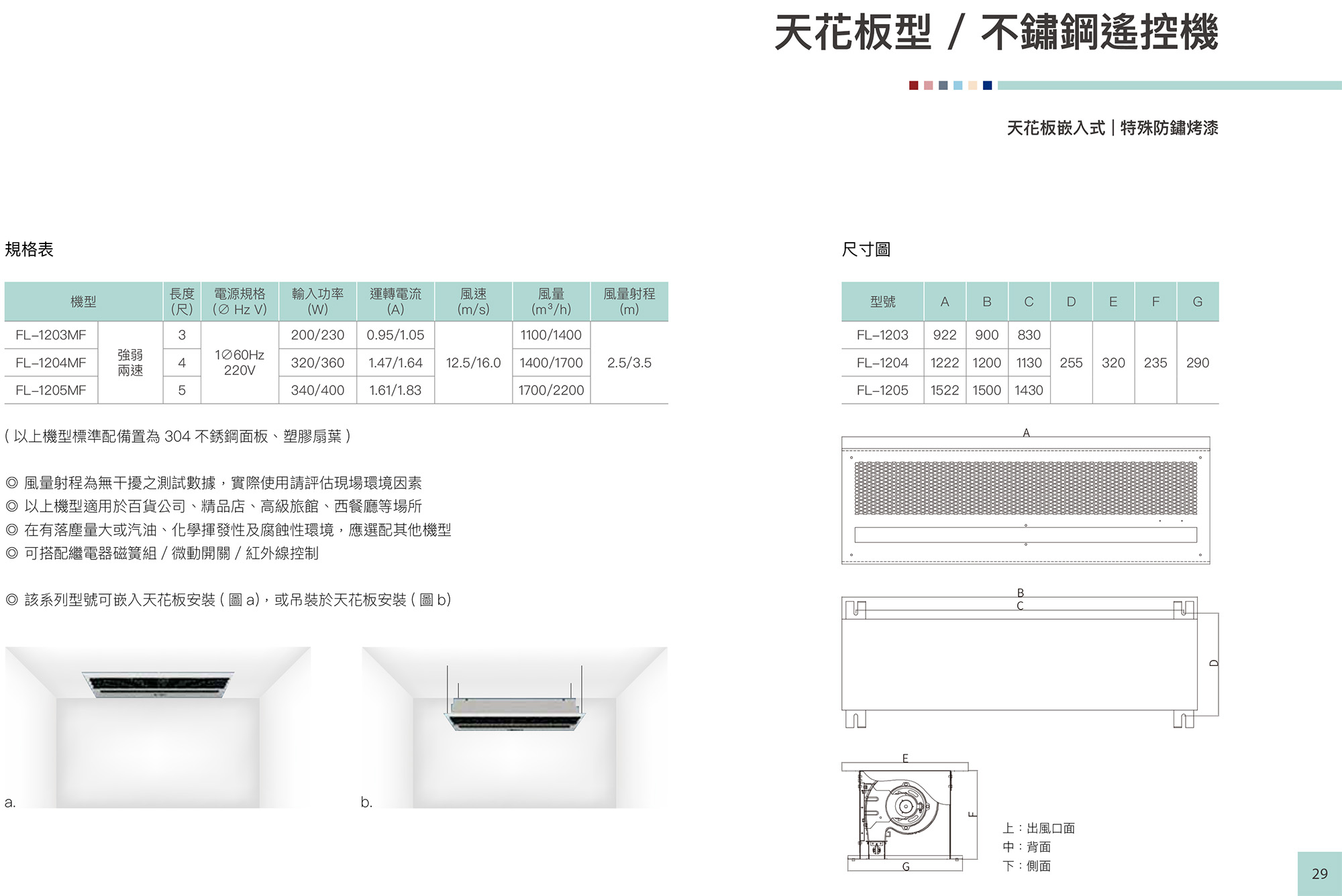 2. 天花板嵌入式,304不繡鋼面板耐潮濕